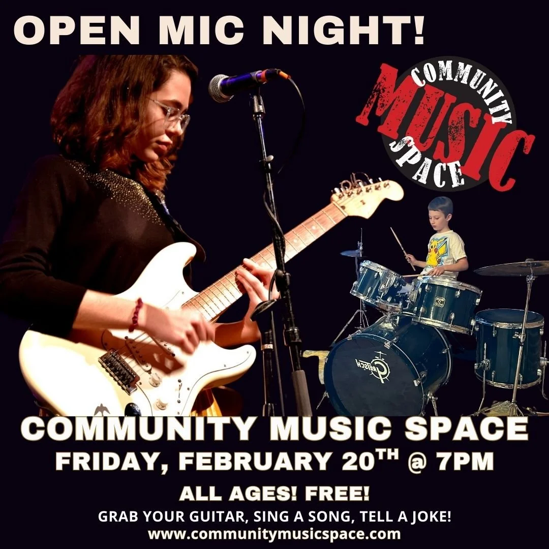 This Friday! Come make some music with us at this free and open to the public event! We hope to see you there! Drop on in to sing a song, play a tune, or just listen to some great music!